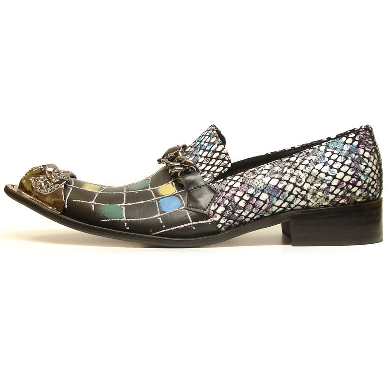 Fiesso Pointed Gold Metal Tip Black Blue Paint Dress Shoes
