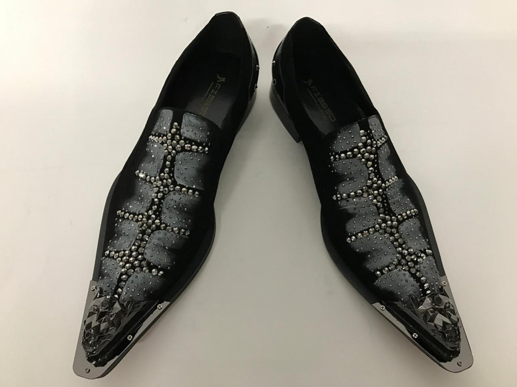 Fiesso Black Suede With Rhinestones/Studs Slip-on Shoes FI 7008-2