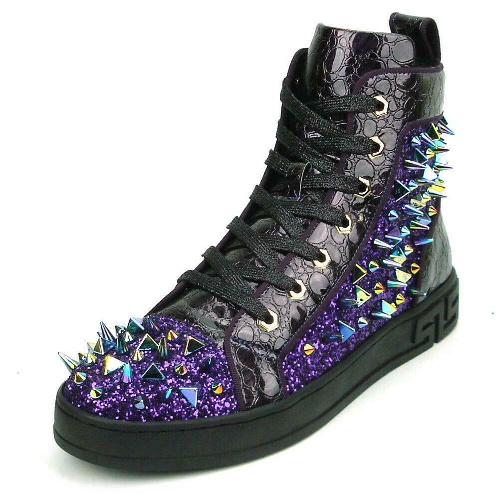 Encore by Fiesso Purple High Top Sneakers with Glitter and Spikes FI 2369