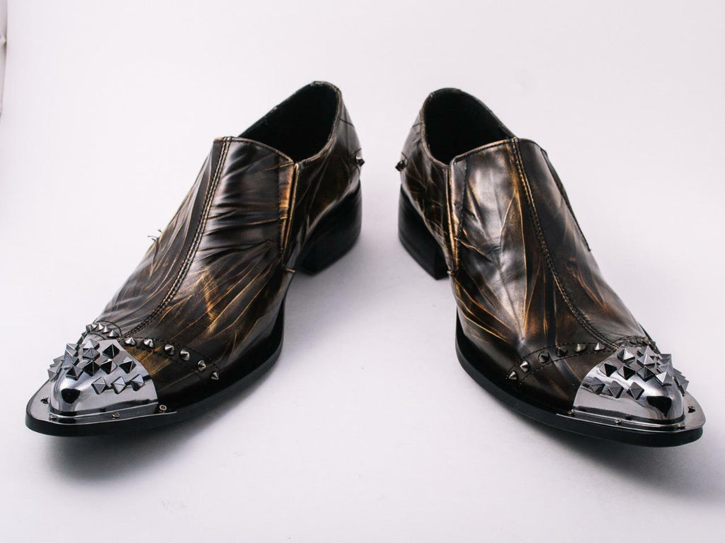 New Men's Brown Fiesso Pointed Metal Toe Slip-on Shoes with Spikes Studs FI 6844
