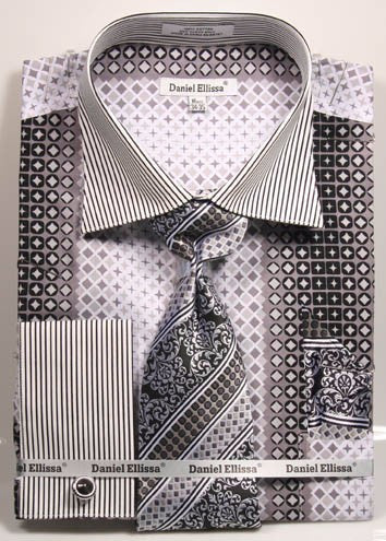 Daniel & Ellisa DS3786P2 Men's French Cuff Dress Geometric Pattern Shirts with Cuff Links
